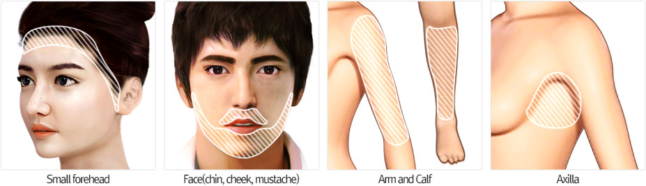 LASER waxing destroys hair follicle and root by using LASER which reacts to melanin. Previous method could remove just one follicle at once. But LASER waxing can remove multiple follicles at one shot. It can reduce treatment time and it is safe because it destroys follicles selectively. Pain is minimal and pore is tightened after the treatment. More than 5 times of treatment is recommended for those who want a sustainable effect.