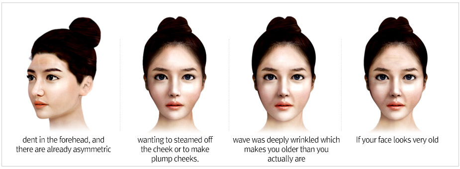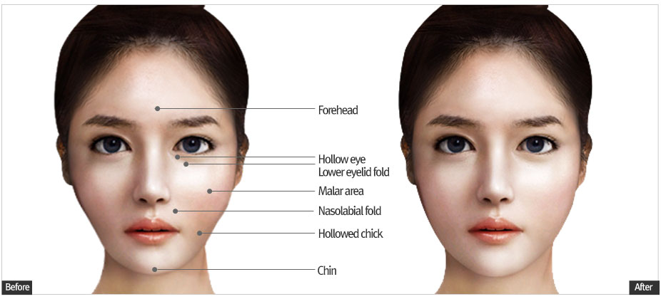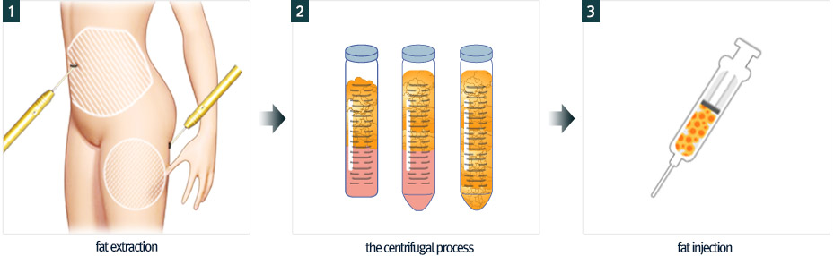 Autologous fat graft is fat injection procedure to hallowed face after harvesting fat cell from abdomen or thigh. We centrifuge harvested fat in order to extract pure fat. Autologous fat graft is not just filling fat to hallowed area. It gives excellent three dimensional volume effect to whole face.