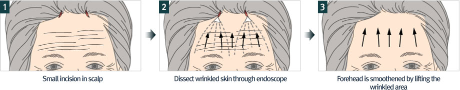 The U.S. FDA approved biocompatible material, currently used in 24 in the country a few years ago, as well as the KFDA approving the product. Pulling direction can be varied range of satisfaction with the surgical results in high forehead wrinkles as an excellent effect. After 12 months after surgery, the wrinkle will disappear as a result