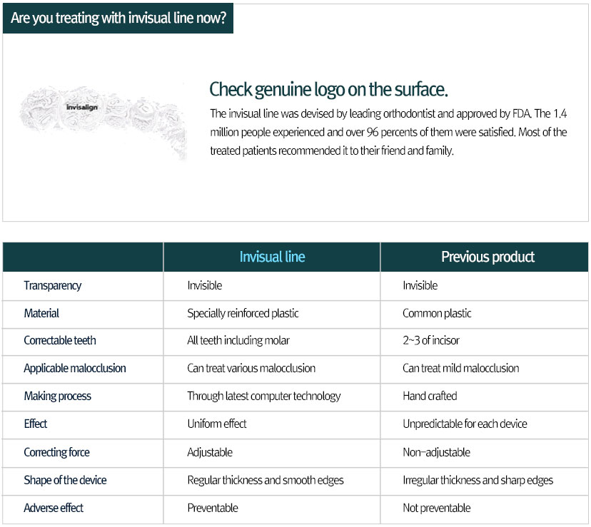 Differences between Invisual line and previous transparent orthodontic device