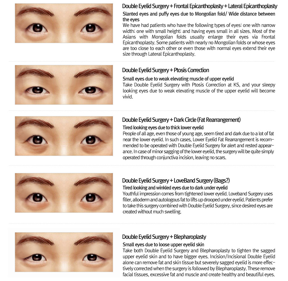 Unlike the past, we apply different surgical procedures depending on patient’s different eye shape as they expect to have an eyelid that looks best on each of them. According to this recent trend, we have been operating several Correction surgeries at the same time.