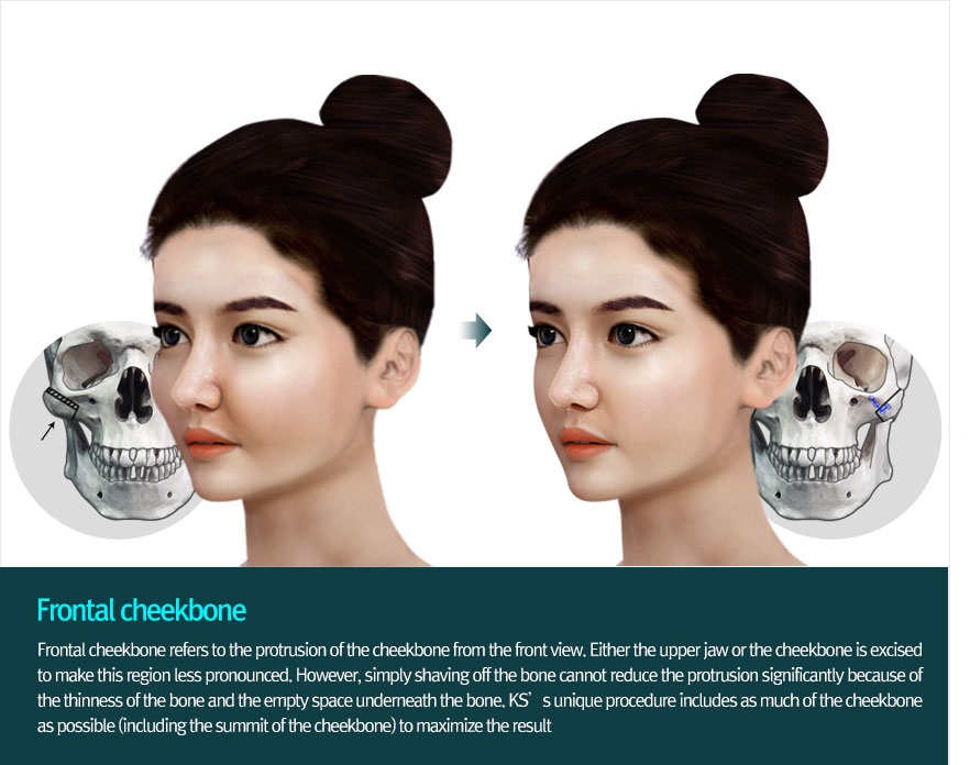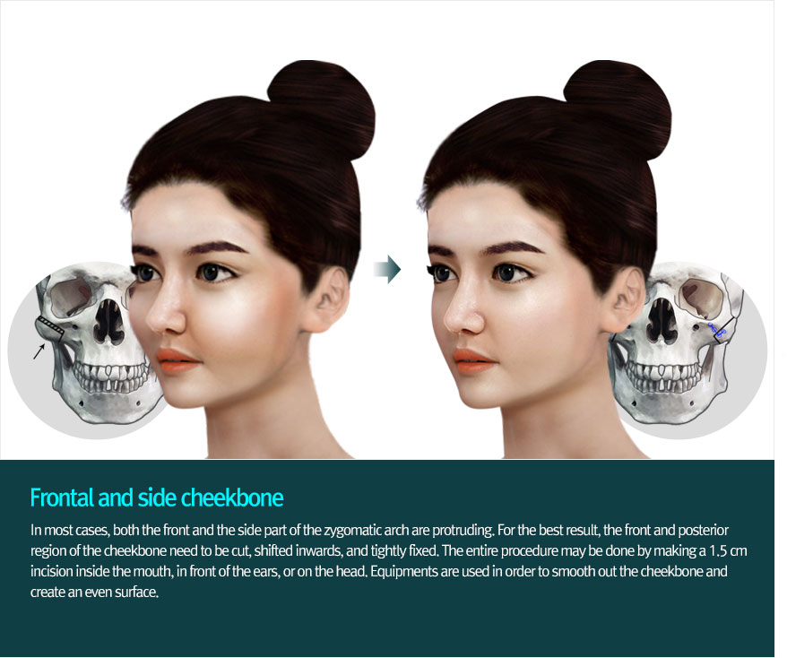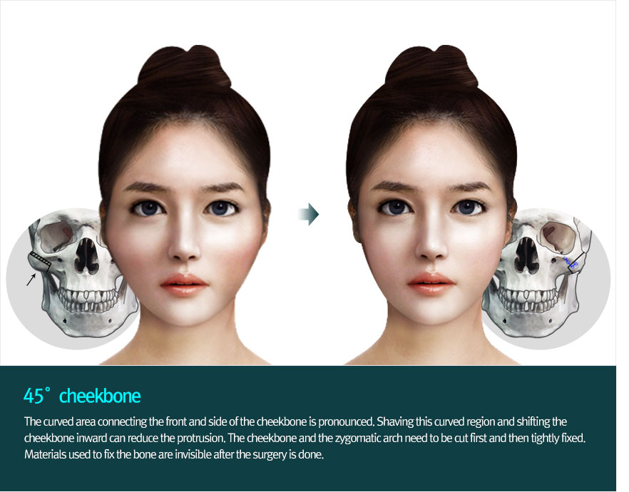 1. The shape of the cheekbone greatly differs depending on the individual, thus the surgery must be done after detailed examinations on the region for the successful shift of the three-dimentional structure of the cheekbone.