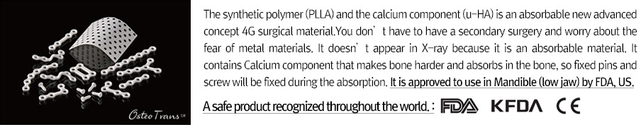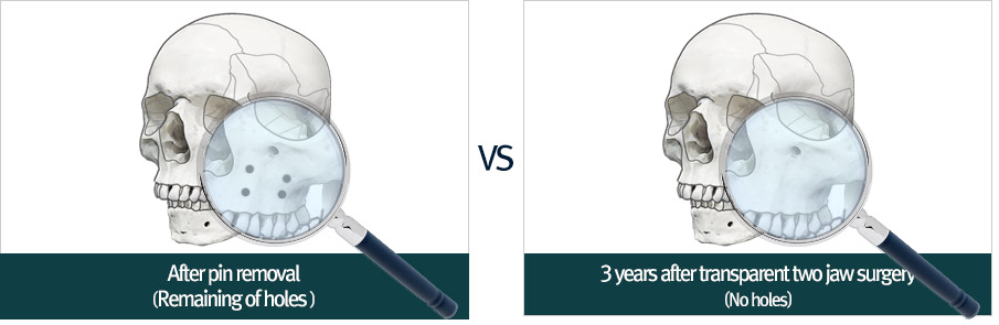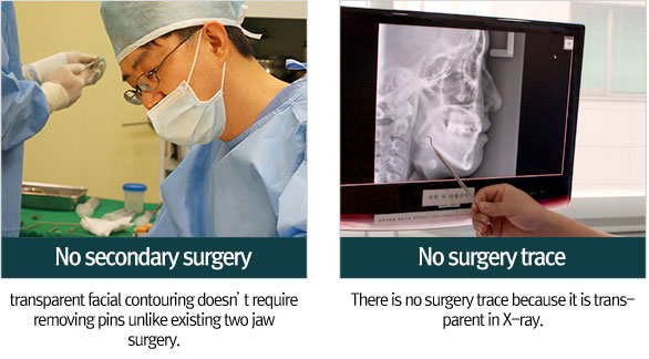 Facial contouring is the surgery that adjust clown and jaw tip bone. Transparent two jaw surgery is to fix the fractured bone with absorbable fixed pins during operation.