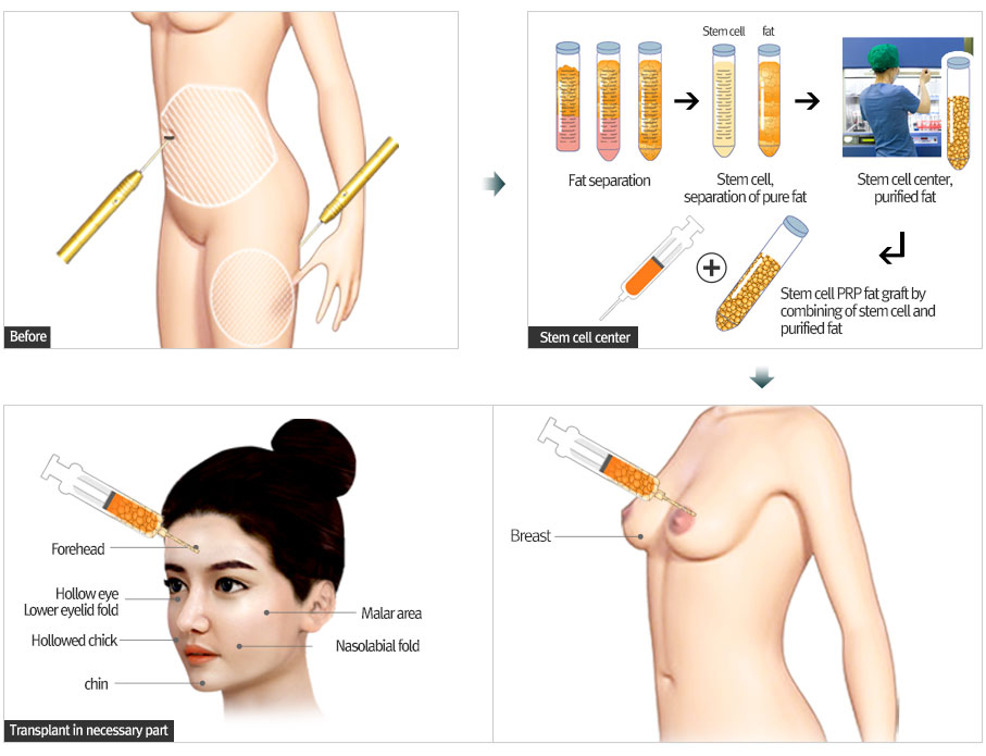As your skin starts to age and reconstruction of the skin becomes harder than before, we can solve the problem by extracting the fat from your body and, through centrifugal procedure, we can proceed with the surgery of grafting fat into your body.